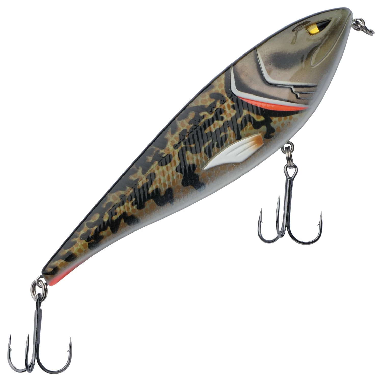 Berkley Zilla Glider is a gliding jerk bait that is very easy to use. It features a side-flashing swimming action, which means that it works best with a traditional style including occasional stops and tugs. Due to Berkley’s Weight Ramp system, Zilla Glider allows for long and accurate casting. The lure is completed by sharp Fusion19 triple hooks and loud rattler beads.