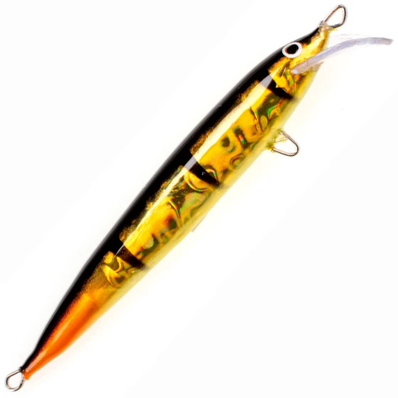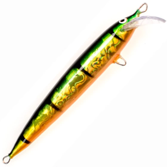 Pro Kalkkaro is the latest masterpiece from Hannu Kesonen, one of the most successful and experienced Finnish plug makers. The new Pro Kalkkaro has smooth sides and an even more responsive swimming action. The rattler pod is positioned optimally within the body to increase effectiveness. The lure is coated with a Loimu film that reflects light temptingly and varyingly in the water. The perfect tool for trolling for zander and salmonids. Swimming depth approximately 1.5 meters. Equipped with a swivel and a single triple hook. The triple hook equipped with a swivel makes it easier to remove the fish and increases durability as the sharp teeth of fish are kept further away from the body of the lure.