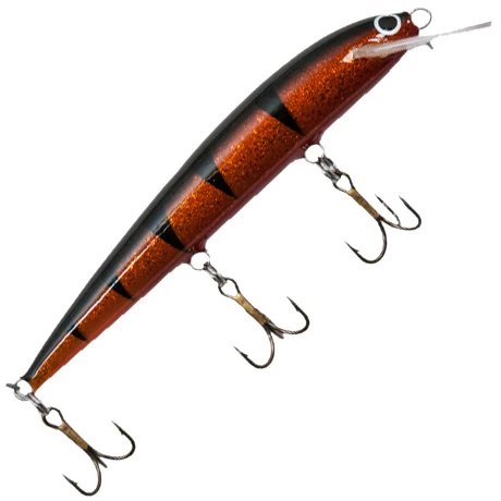 The 11 cm Karikko is specifically designed for trolling. The plug is shaped like a common bait fish and it is a general-purpose lure for catching zander and salmonids. The diving lip of the plug takes it to depths of 1.5 – 2.5 meters. The lure’s body is made of cellular plastic, which means the lure will never get waterlogged and it will maintain its wooden-plug-like sensitive swimming action even if the surface of the lure is damaged.