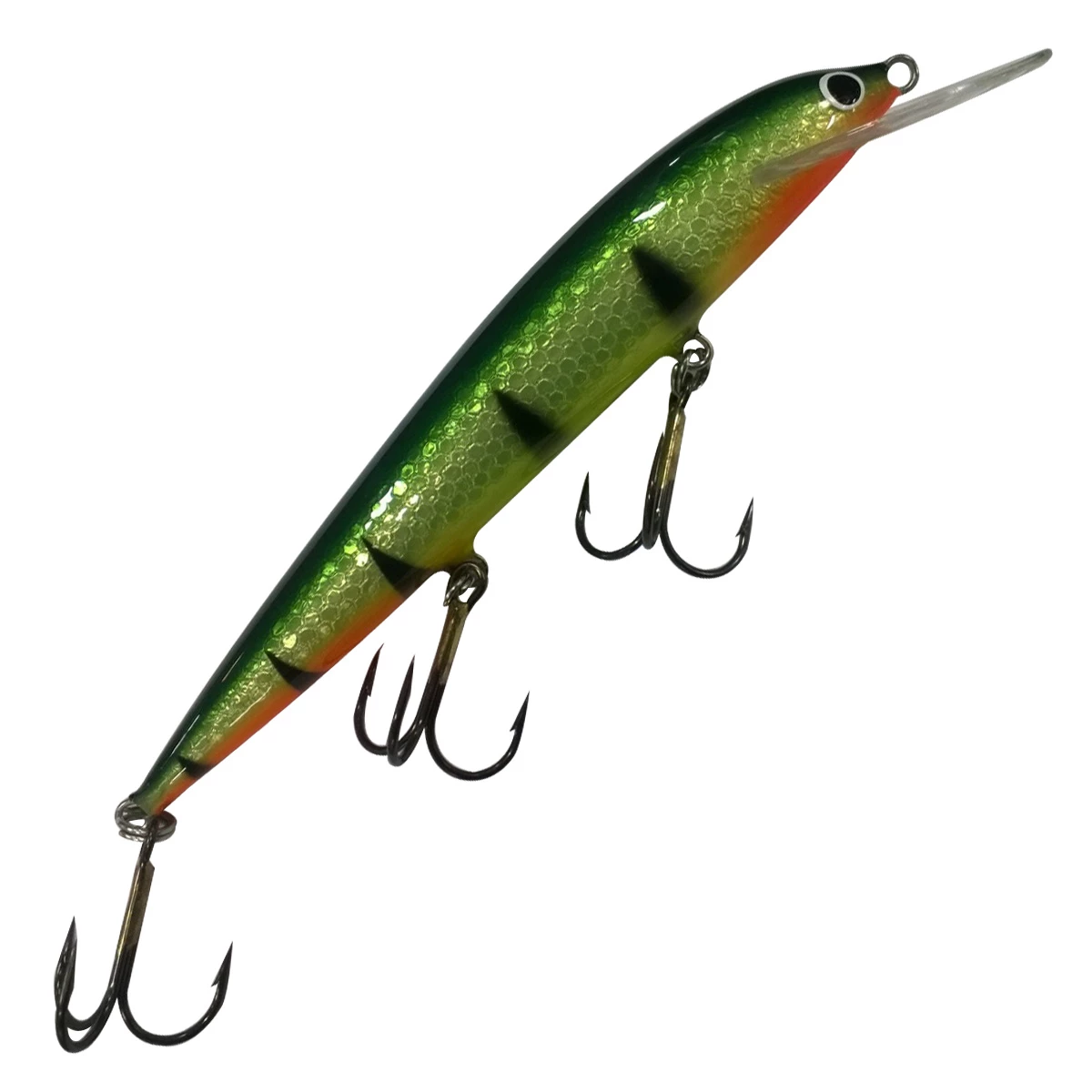 The Karikko plug will quickly dive to the right depth and its powerful and natural swimming motion has proven to be very effective. The body of the plug is made of cellular plastic that will not get waterlogged, which means the lure can keep its swimming motion consistent despite damage caused by fish bites. The diving Karikko plug can also be used as the leading lure in a double rig.
