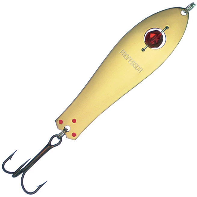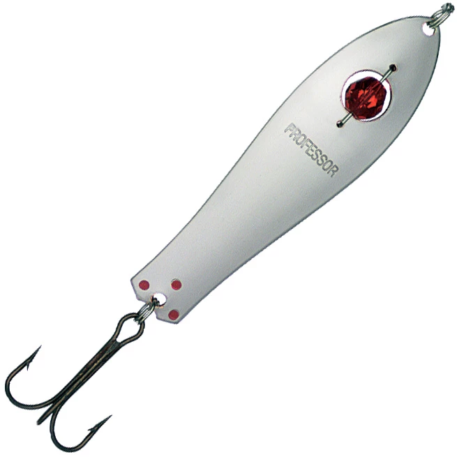 A tasty treat for trout and perch who hunt common bleaks near the surface. Cast directly into the sweet spot and make the lure swim with short jigs and stops. Can also be used to catch salmon in rivers. When you meet a shoal of salmon rising to their spawning pools, cast this Professor into the fray and reap the benefits!