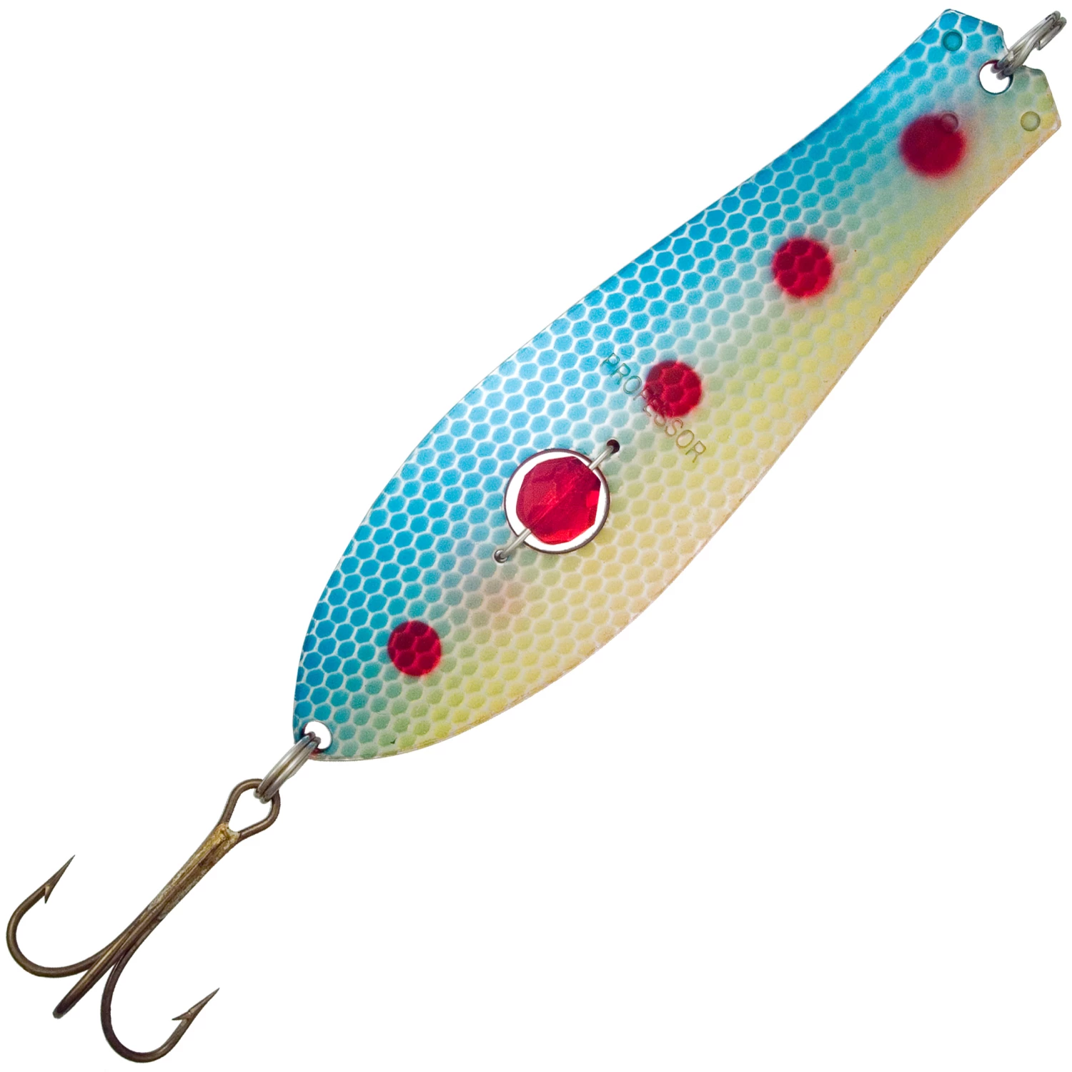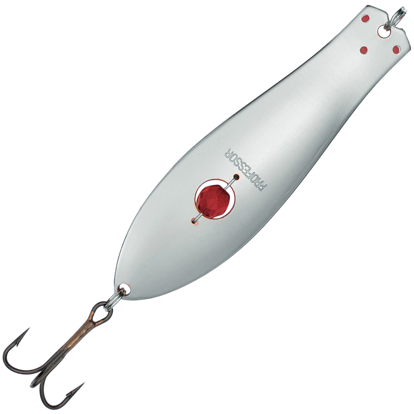 A casting lure with a pearl that serves as extra attraction. This is the basic Professor model to use when casting for pike, trout and salmon. Its weight makes it efficient in running waters as well. Many anglers have used this very model to catch their biggest salmon specimens. This Professor swims swiftly in a zig-zagging motion that makes the salmon’s head spin. Always pack the traditional perch and roach colors as well as at least one annoyance color.