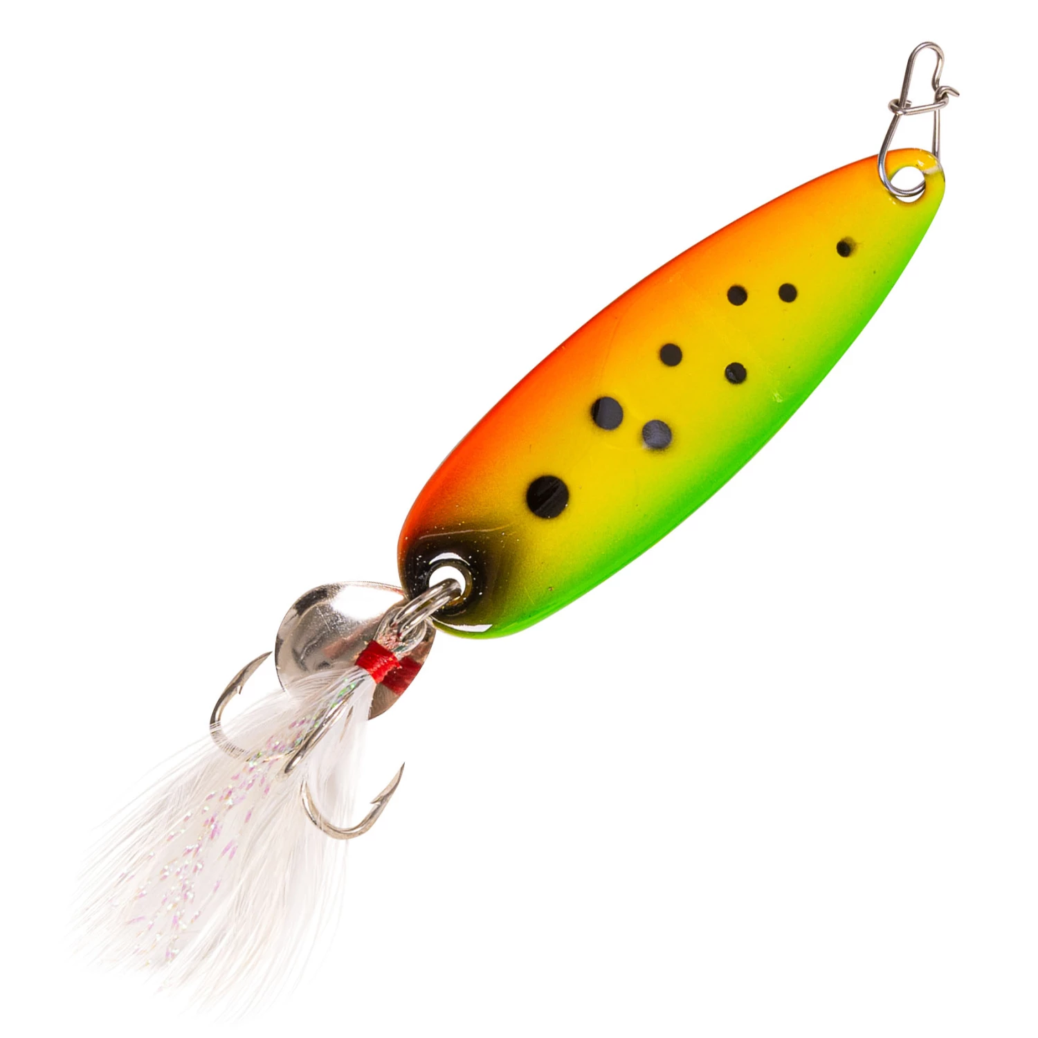 The Maxximus Taluz spoon is perfect for both fresh and saltwater fishing. Taluz attracts sea trout, zander, pike, and large perch! Taluz was designed to facilitate long casting and has a spinning and bopping swimming pattern that is further emphasized by the spinner.