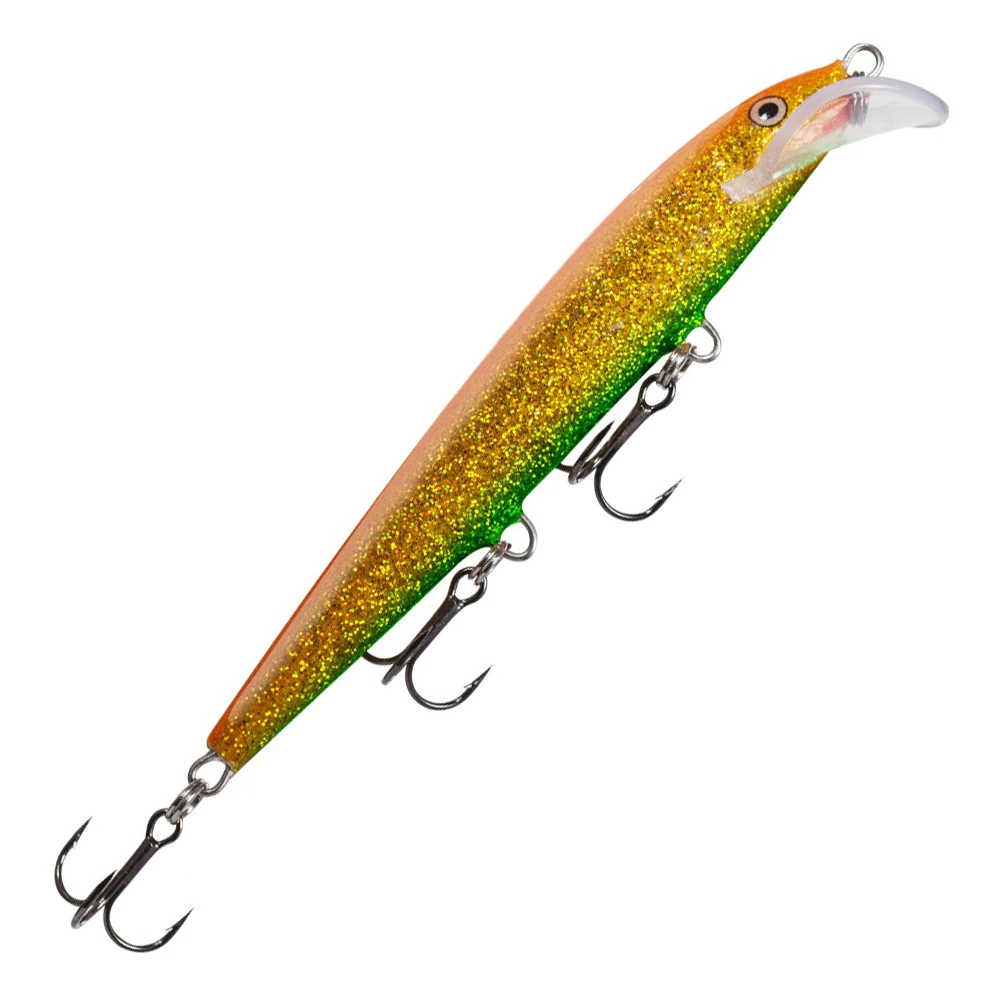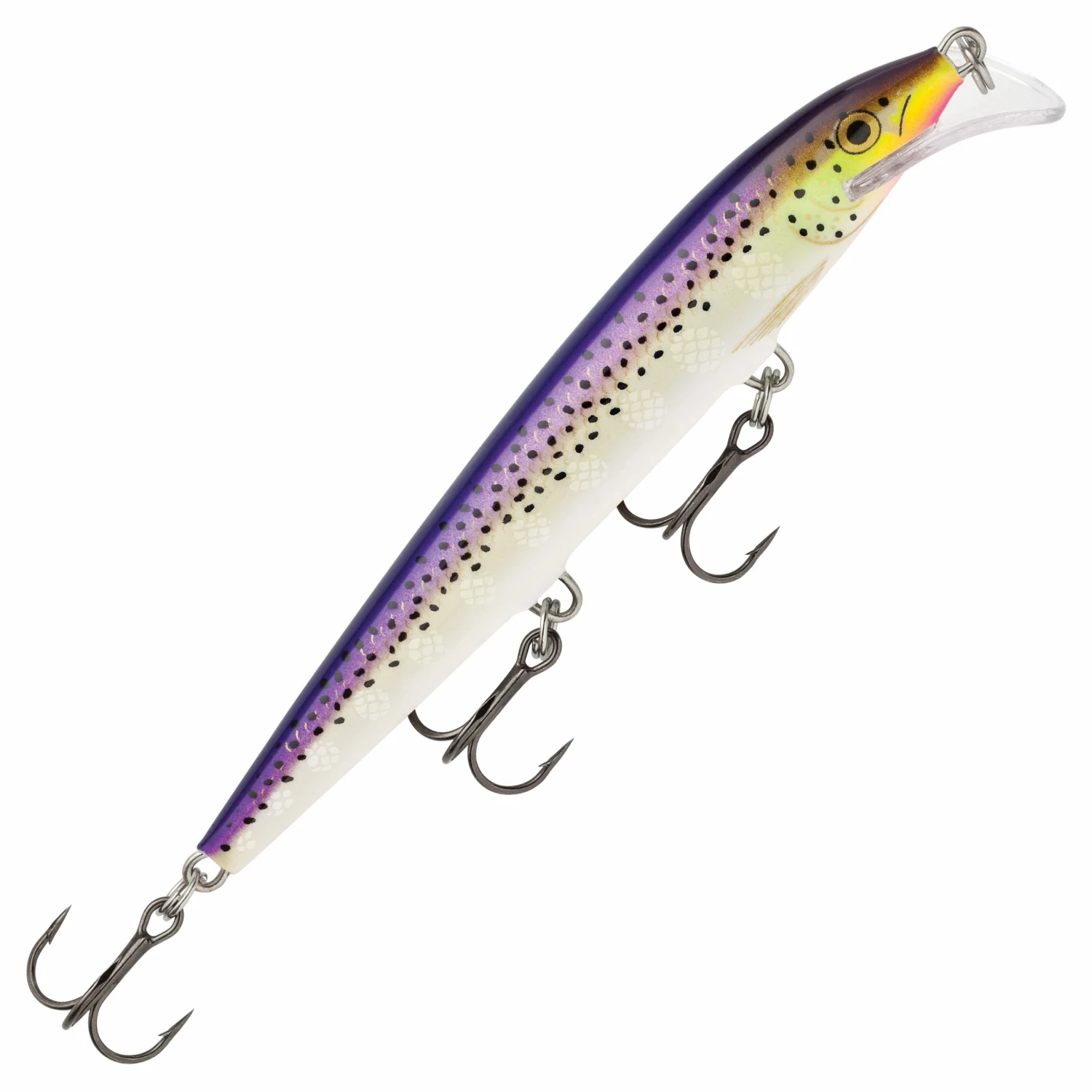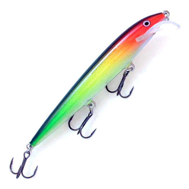 The body of the 11 cm Scatter Rap Minnow is the same as the one used in the Original lure. It is made of balsa wood and the colors are guaranteed Rapala quality. Equipped with high-quality VMC Black Nickel hooks.