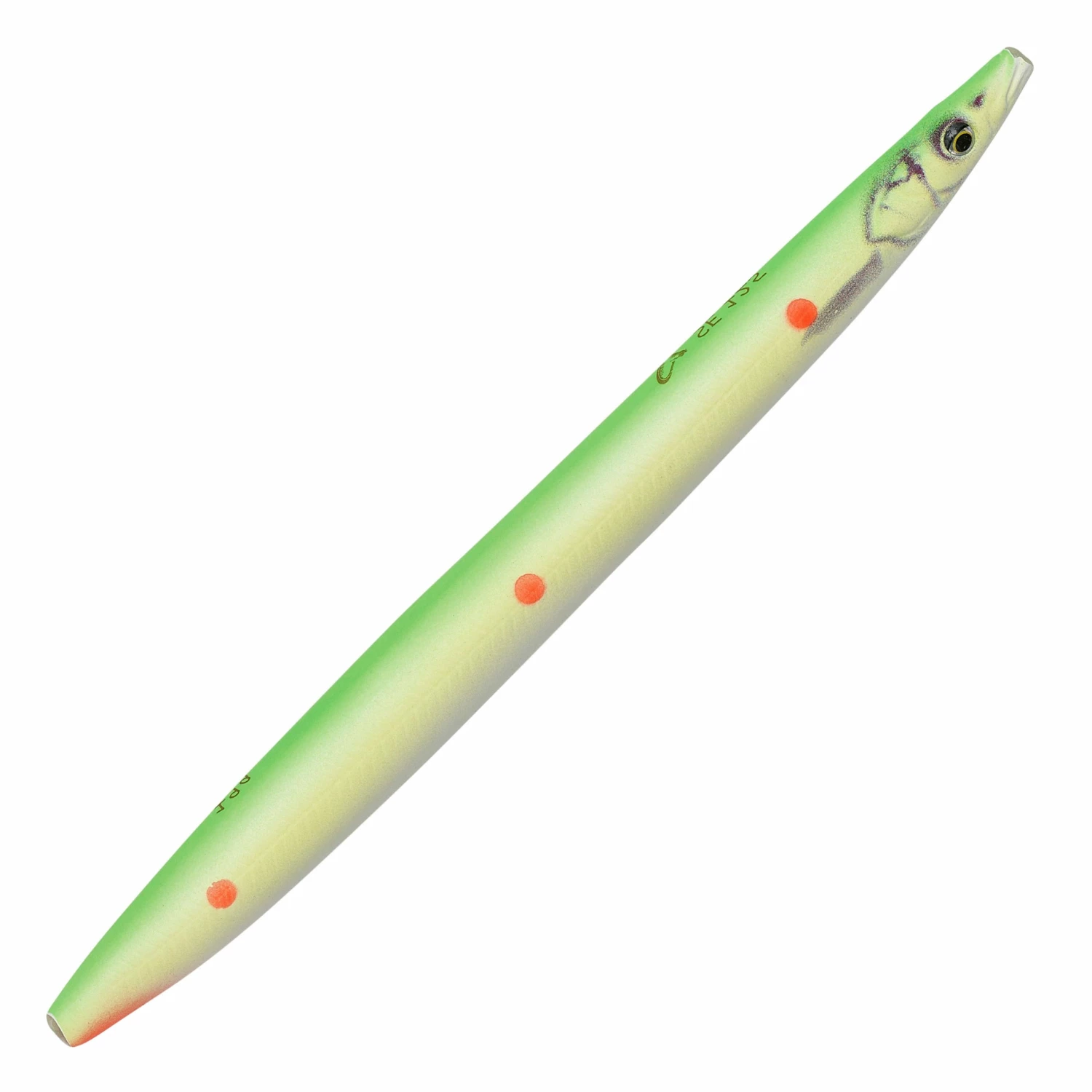 The body is made of an especially strong ABS plastic and the details are incredibly accurate. There is a spear-shaped weight inside the body that guarantees long casts even in extremely windy conditions. The Line-Thru system guarantees perfect presentation and ensures that the fish cannot use the weight of the lure to shake free. We recommend using fluorocarbon or monofilament line in the rig/leader.