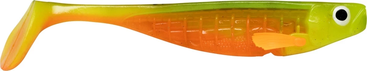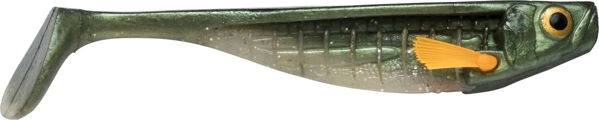 The action of the Storm R.I.P. T-Bone jig combines the kick of a responsive paddle-shaped tail with a strong body roll. The action is initiated at a very low speed, but the T-shaped body can also withstand higher speeds without rolling over.