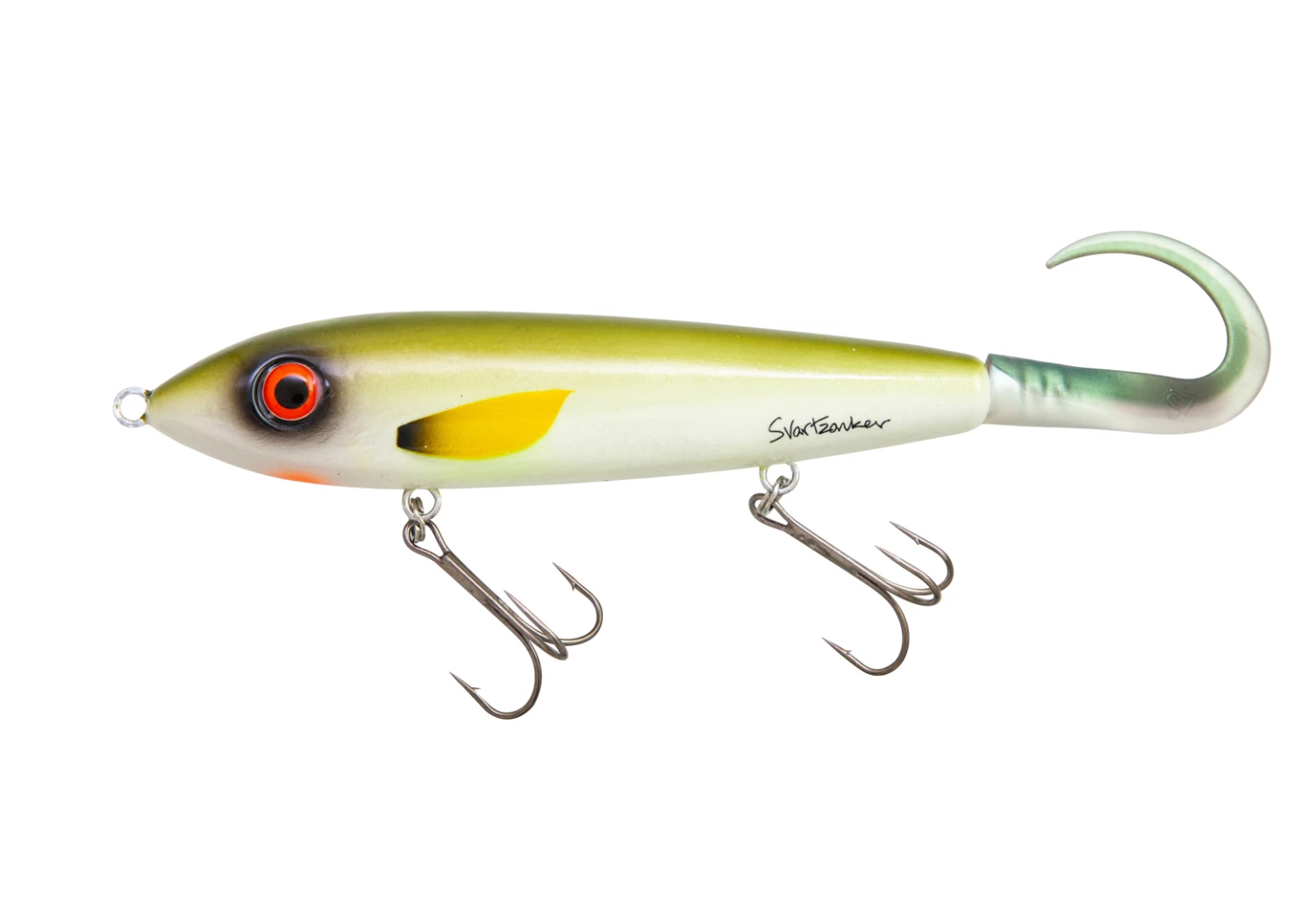 Big McTail 26 cm is a larger version of the classic McTail. Svartzonker wanted to make a tailbait for anglers going after the pike that got away. Sinks slowly. Swims with an extensive side-to-side glide. The tail can be replaced easily, but is still firmly attached. Made from a single piece of highly resilient ABS plastic, with an internal 1.6-mm steel wire, and zinc weights for balancing. Equipped with HD Black Nickel 4/0 hooks. McTail is hand painted and lead-free.