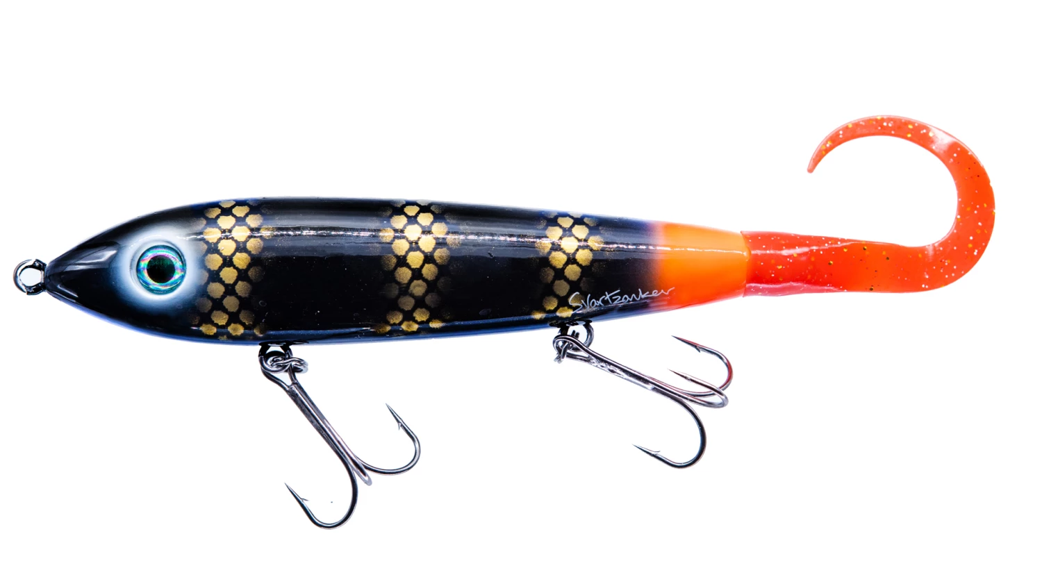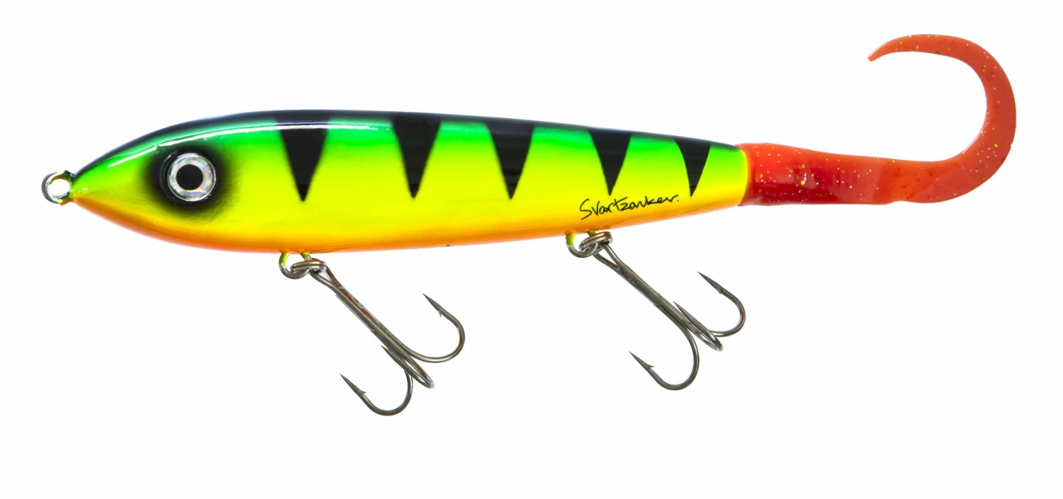 Svartzonker Big Mctail On Top is the perfect jerk for fishing near the surface! A sturdy ABS shell, sharp Black Nickel 4/0 hooks, and a replaceable tail! Switch tails to alter the McTail’s swimming action.