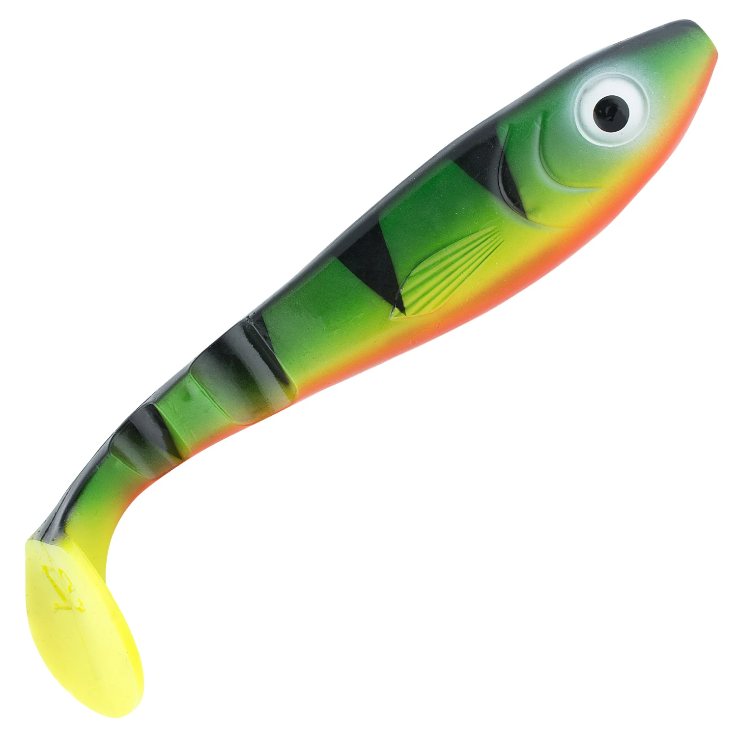 A large, sensitive tail gives this shad its great action. This lure is delivered without hooks to allow you to set it up just the way you like. You can, for example, rig it with stinger hooks and a jig screw or use a large jig head instead.