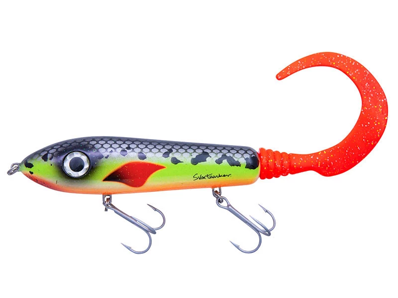 Svartzonker McTail Original – the original. An extremely versatile tail jerk, with an irregular swimming pattern that attracts pike. Sinks slowly. McTail has a sturdy ABS construction, stainless steel wire, hand painted design, stainless steel tail screw and hook loops, and VMC Perma Steel hooks.