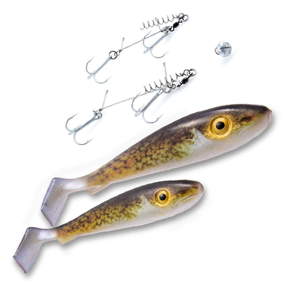 The astounding new McRubber pike lures in an off-the-rack package including everything you need to begin use these highly effective lures.